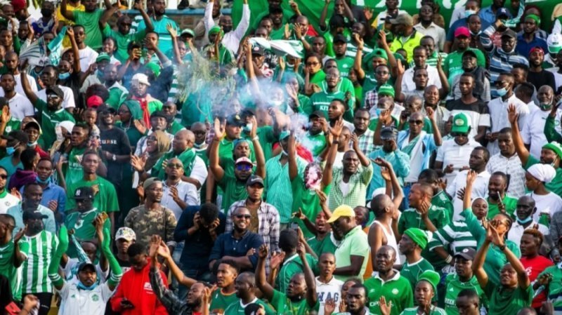 Ubwo baririmbaga ibi, umwe yamanutse ashaka kujya gutangira abasifuzi ngo abasagarire ariko abashinzwe umutekano baritambika baramutangira.