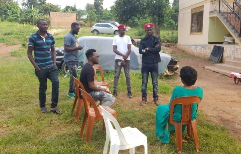 Bobi Wine n’itsinda ryamuherekeje batambagiye inzu Mowzey Radio yubakiye umubyeyi we ndetse bavugira isengesho mu nzu yubatse ku mva y’uyu muhanzi.