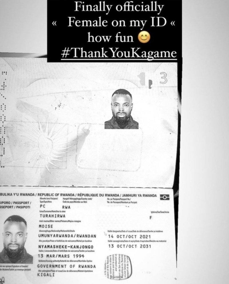 Ku mugoroba w’ejo hashize ku wa Kane, RIB yatumijeho Moses imubaza ku rupapuro rw’inzira rwe (Passport) hari nyuma y’uko ashyize hanze ifoto yarwo ashimira leta ko yemeye kumuhindurira igitsina igakuraho gabo igashyiraho gore.