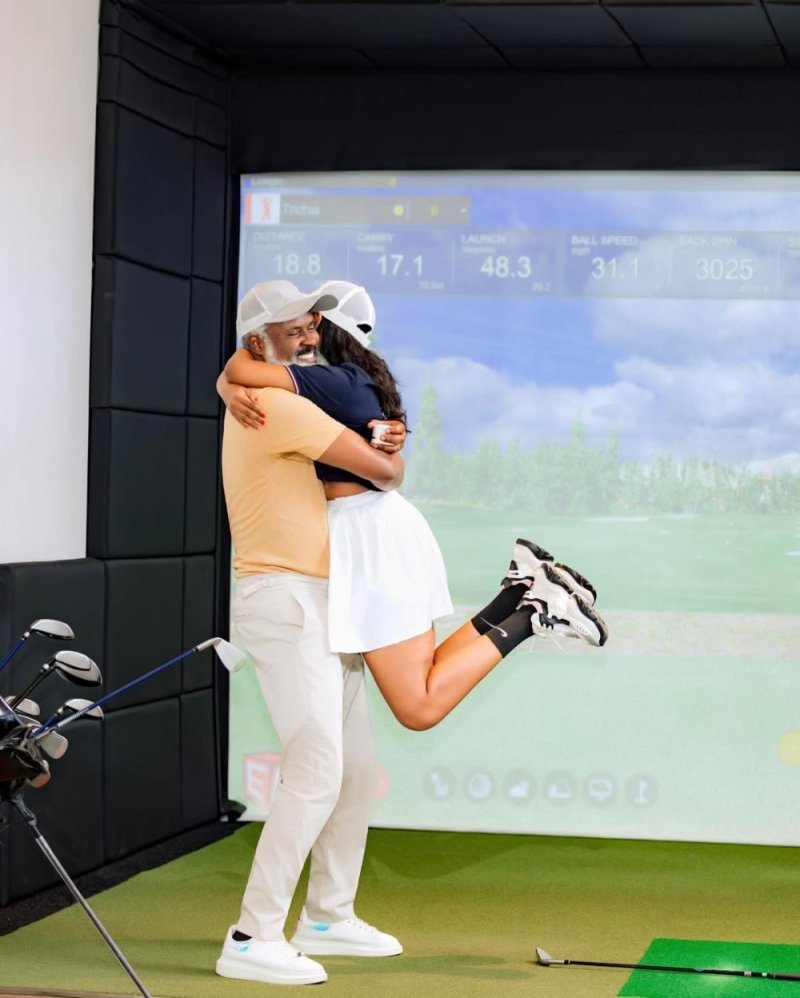Tukowote w’imyaka 51, aya mafoto amugaragaza bari Birdie Lounge Kigali barimo bakina Golf, nyuma arapfukama ashyira ivi hasi maze asbaba umukunzi we kuzamubera umugore na we arabyemera.