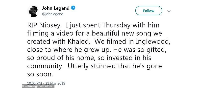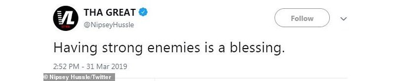 Steve Soboroff, Umuyobozi wa Polisi i Los Angeles yanditse kuri Twitter ko we na mugenzi we Michel Moore bagombaga guhura na Hussle ndetse n’ubuyobozi bwa Roc Nation kugira ngo baganire ku dutsiko tw’abagizi ba nabi twayogoje uyu mujyi.